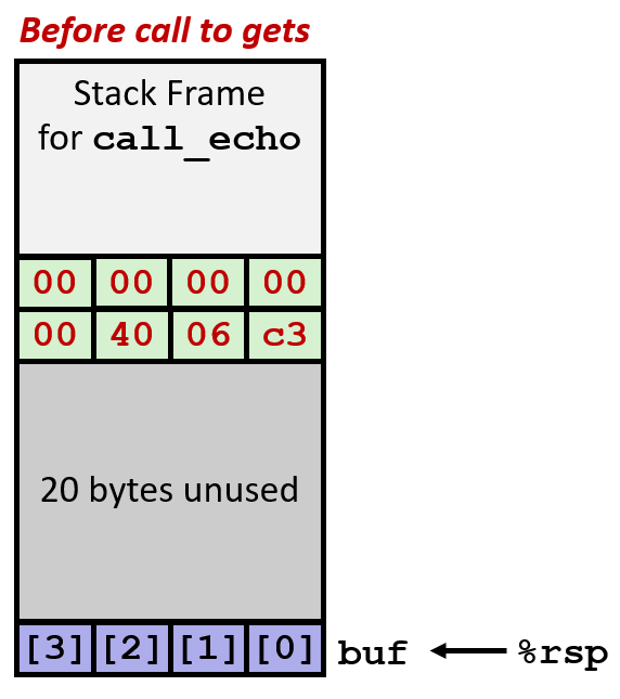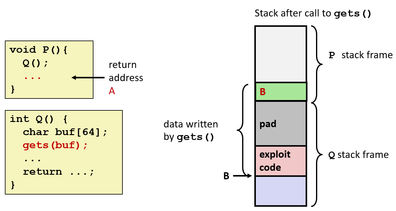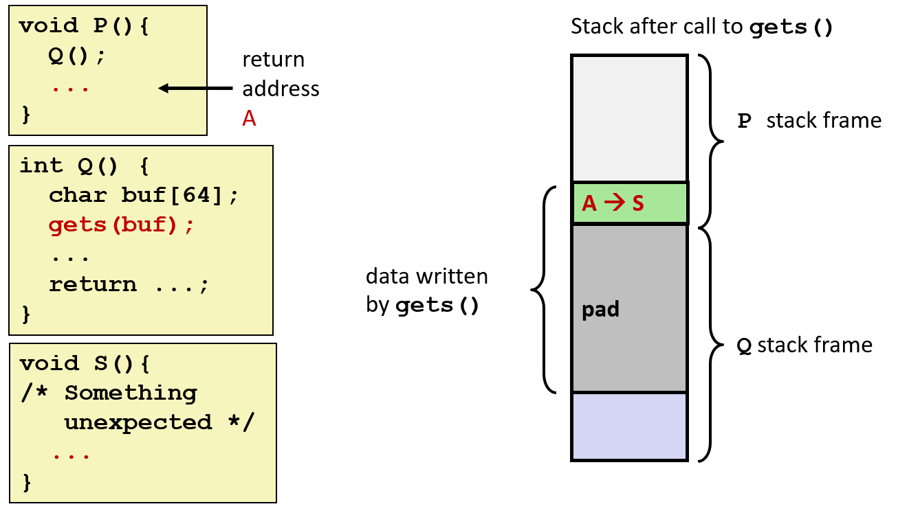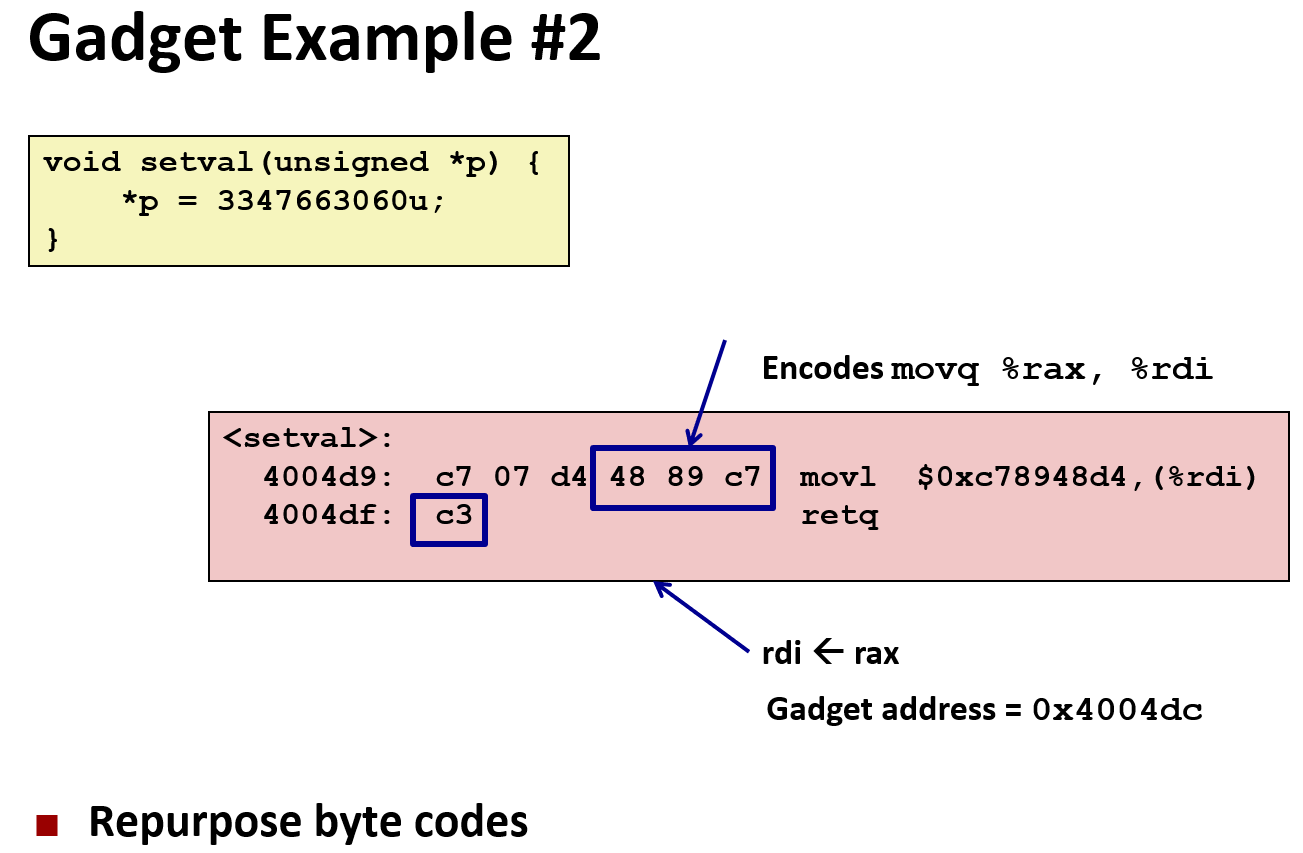 出发,我们讨论了输入不同长度的字符串对缓冲区溢出的影响,进而推出了 3 种利用缓冲区溢出特点的攻击行为(Stack Smashing Attacks、Code Injection Attacks、Return-Oriented Programming Attacks)。它们共同点是,都利用了溢出影响 return address 的特性,使得程序跳转到攻击者指定的位置执行;但从具体操作上各有差异。