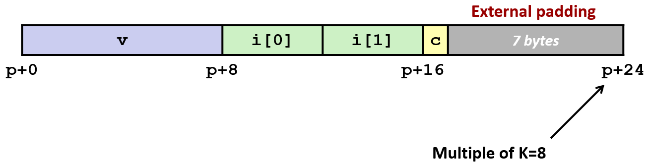 Pad in middle and at end to satisfy alignment;