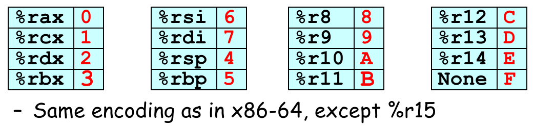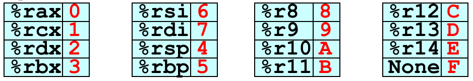 代表不使用寄存器(None),在 Y86-64 中有特殊用途。