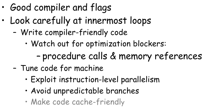 让它少预测点,就少错一点(减少分支结构)。这方面的方法大致有 循环转换、unrolling loops 和 conditional moves(回想之前的 General Condition Translation);
