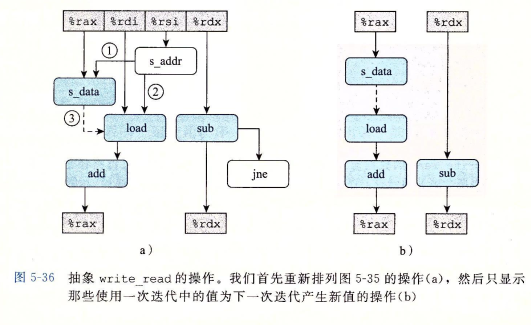 除了 load,store 也会成为关键路径的一环。来看两个例子: