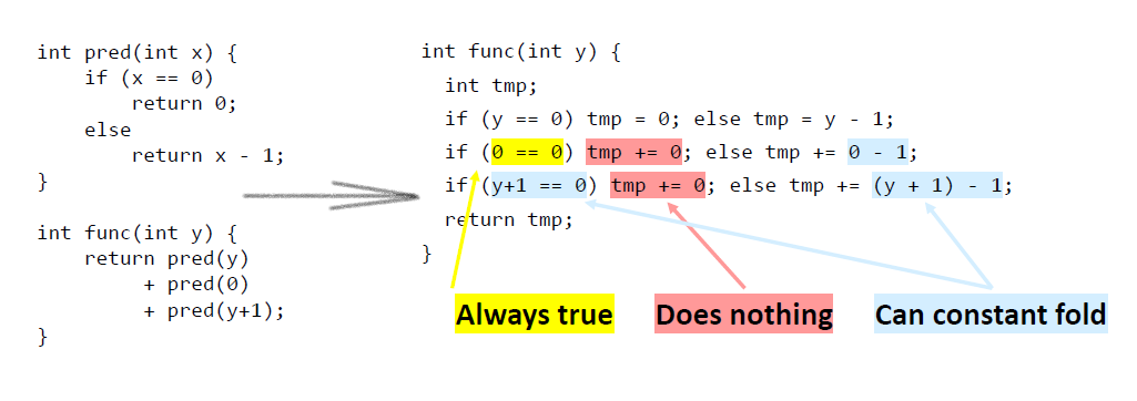 全局的优化:例如 循环结构转换、代码移动(减少不必要的运算)、内联化、全局的相近表达式复用消除;