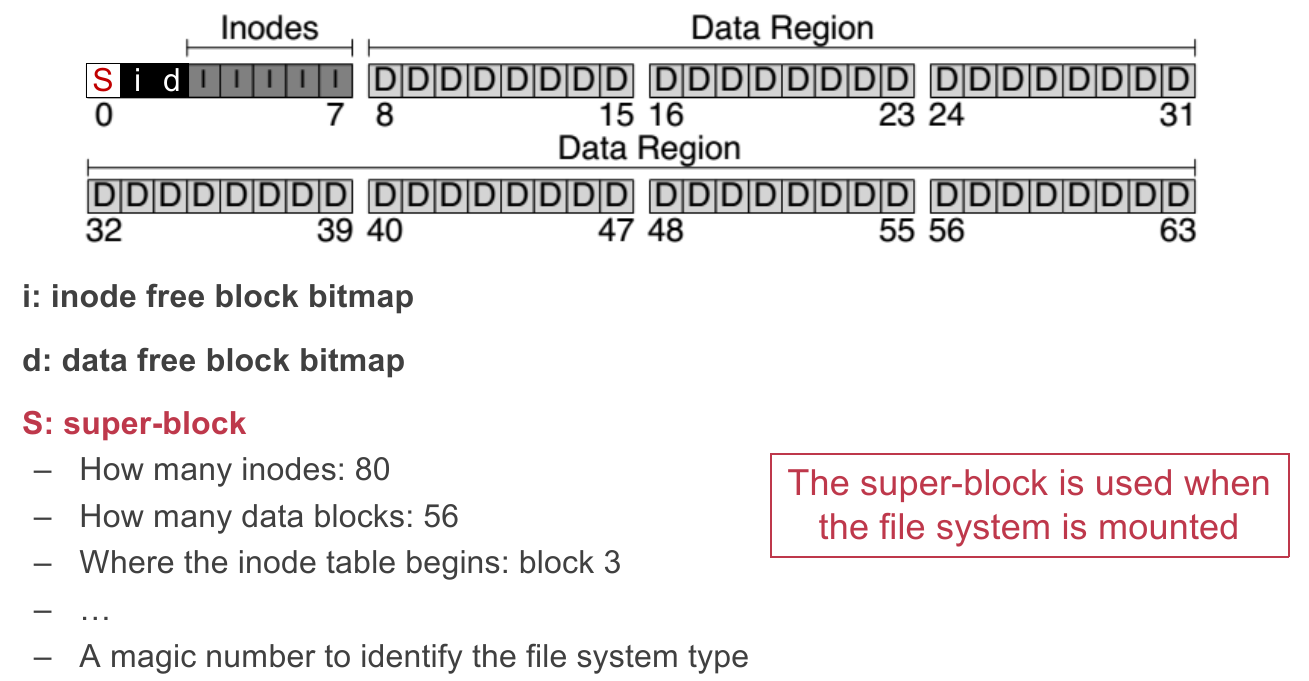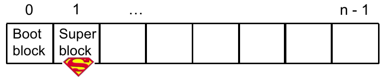 其次,我们需要让系统知道 block 是如何划分的,就需要将 block 的划分大小记录在指定区域内;我们定义这个区域为 Super block: