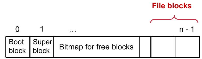 对于 “有哪些空闲的 block” 的问题,我们可以用 bitmap 的方式存放信息,每个 bit 1/0 来代表空闲情况,每个 bit 的 index 来代表 block 的 index;
