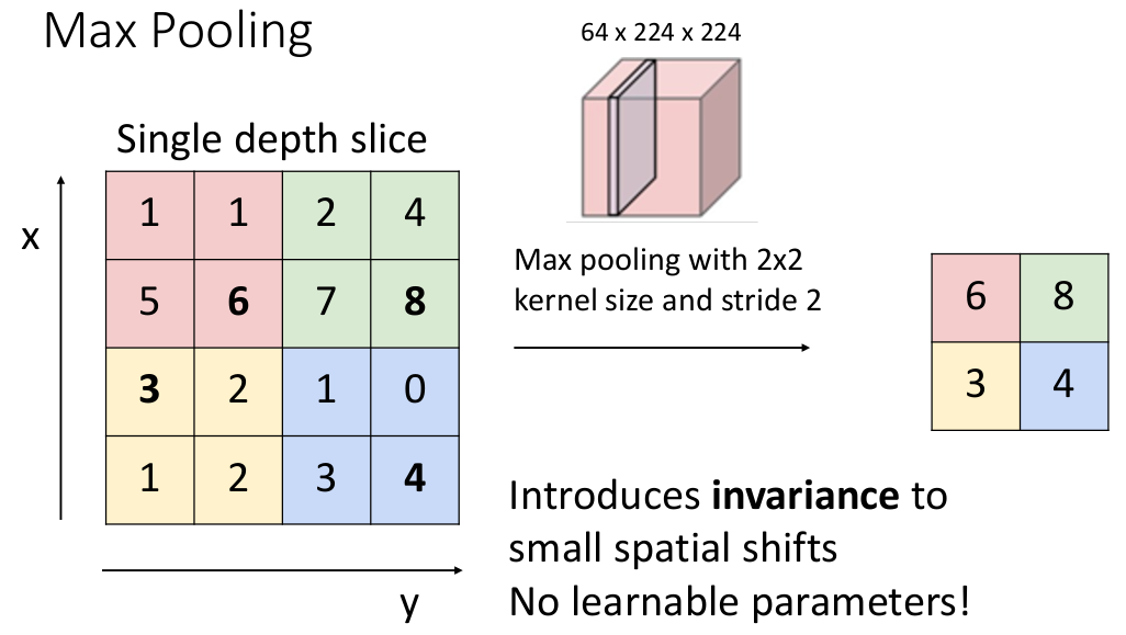 注意到如果 stride 和 kernel size 的维度长相等,则 pooling regions 不会互相 overlap。