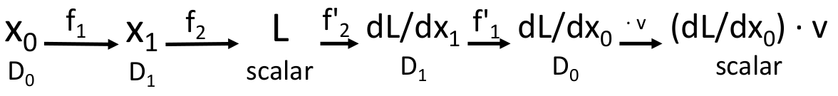 拓展:如果有个系统输入标量,输出向量,想要求输出相对于输入的微分,这个时候,为了防止矩阵-矩阵乘法,我们需要 Forward-Mode Automatic Differentiation,也就是从前向后计算微分。