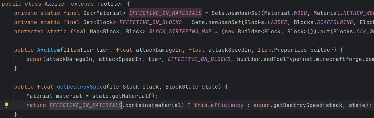 识别一类材质的方块并作用上去。例如,前面提到的 AxeItem