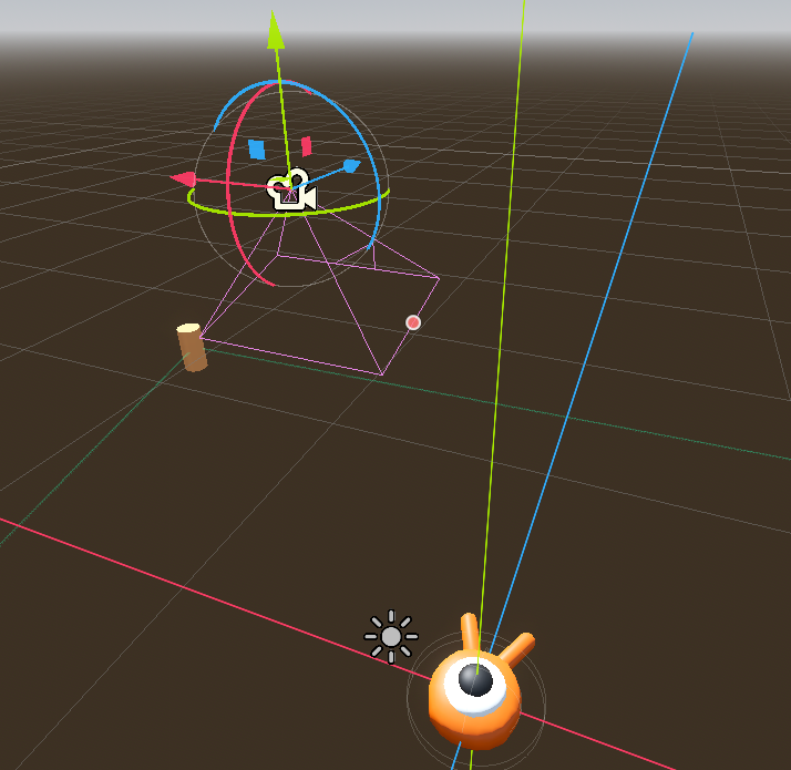 答案就是 raycast。玩家在 3D 场景中通常会从一个视角来观察整个环境,这个视角位置通常被游戏引擎抽象为 “摄像机”(Camera)。例如,下图是一个正在开发的 Godot 3D 游戏项目,半空中悬停一个摄像机,表示游戏启动后玩家的初始视野将位于摄像机的位置上。