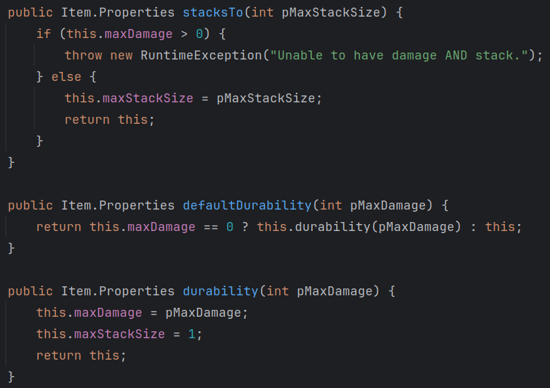 的形式存在于 Item 中。在初始化 Item 对象时,一旦设置了耐久不为 0,就需要将maxStackSize