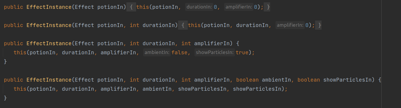类的枚举量(含有 MC 中几乎所有效果),第二参数是效果持续的游戏 Tick 时间,第三参数是对应的药水等级。