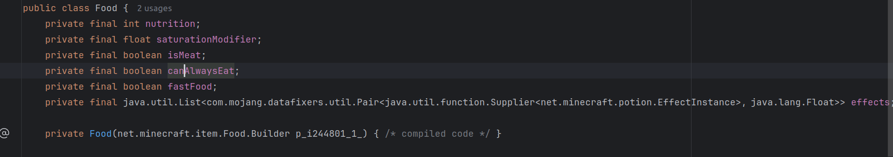,饱了也可以吃的属性,对应构造Food.canAlwaysEat