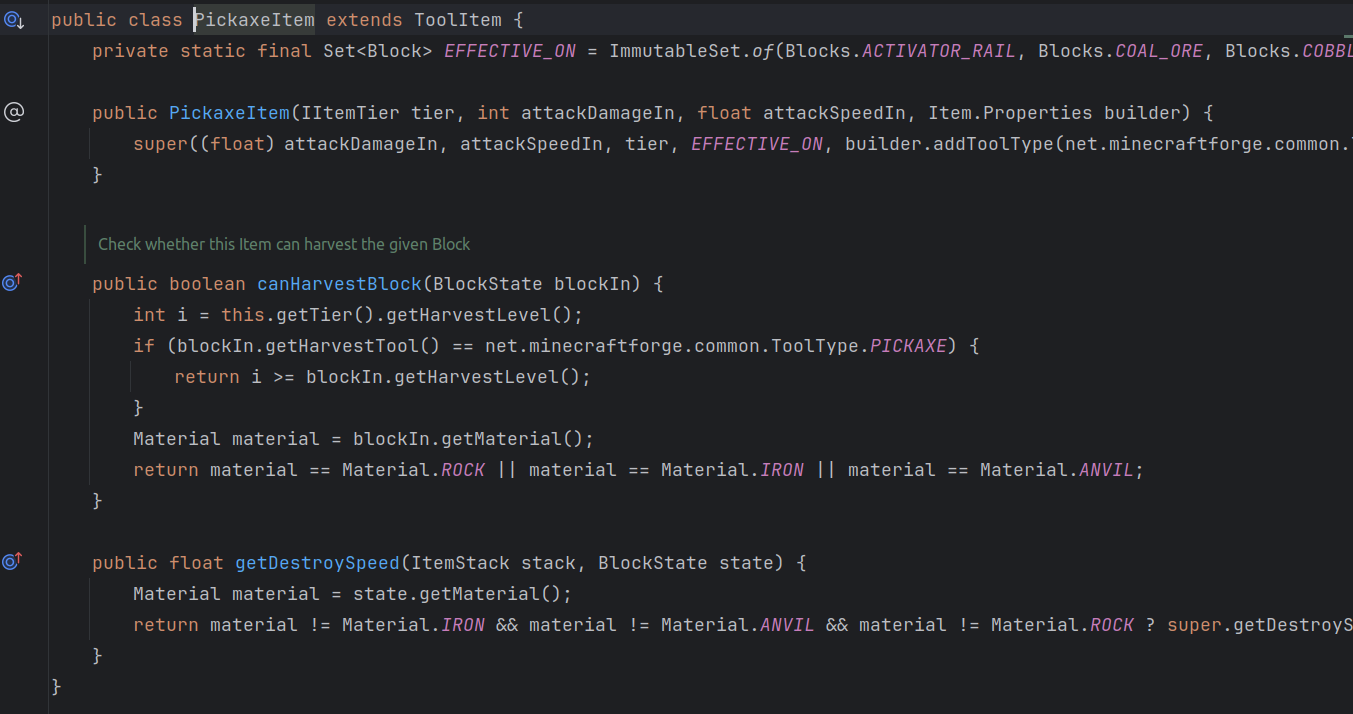 镐子挖掘效果会生效的方块就被以静态常量的方式写在这个类中(上面写了 ACTIVATOR_RAIL