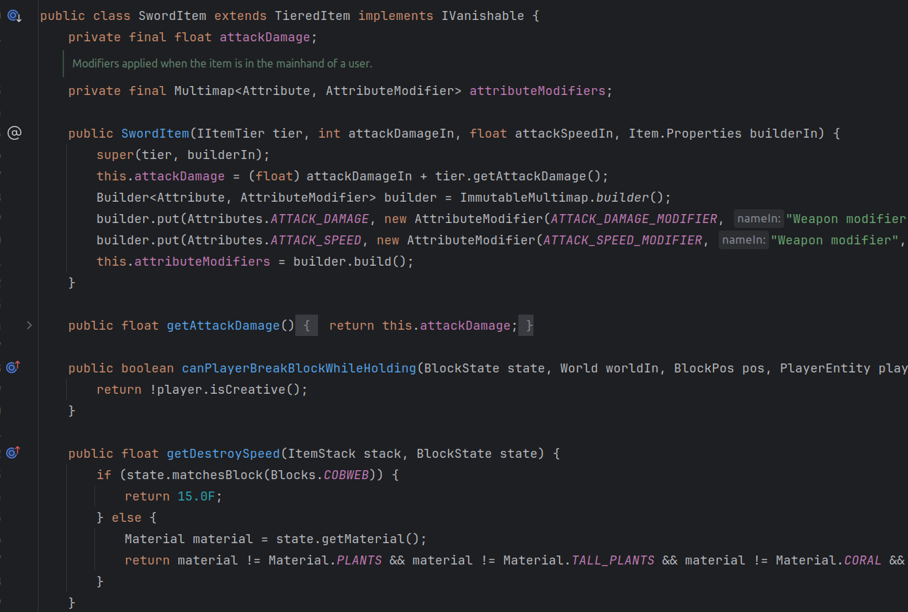 public SwordItem(ItemTier tierObj, int attackDamage, float attackSpeed, Properties prop);